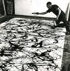 y finas sacudiendo sobre el lienzo un pincel cargado de pintura.